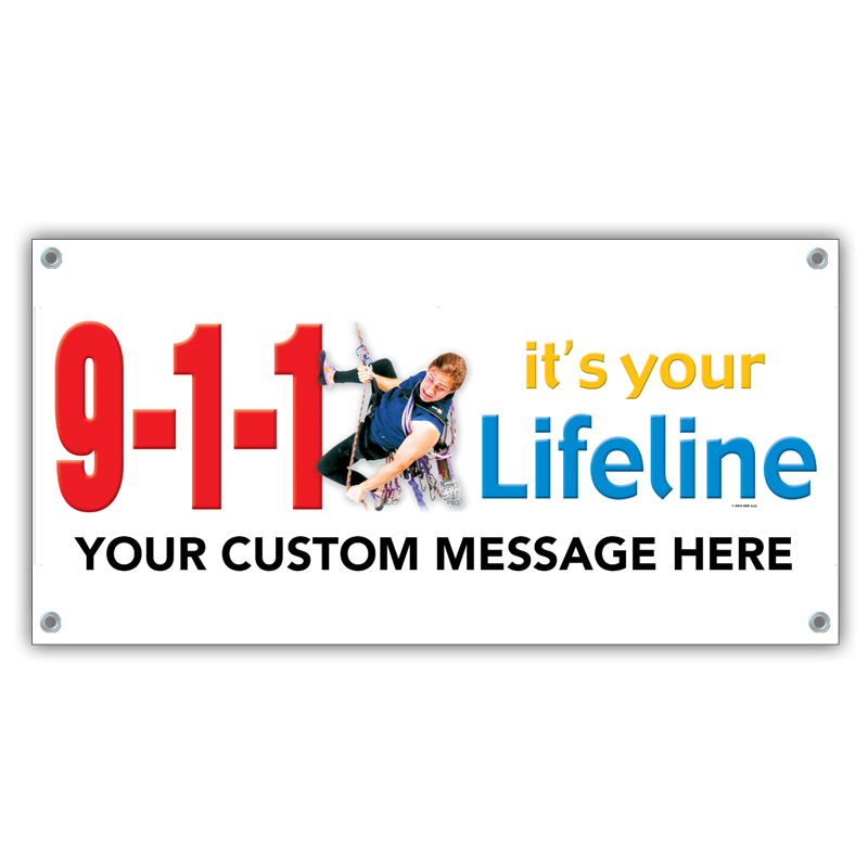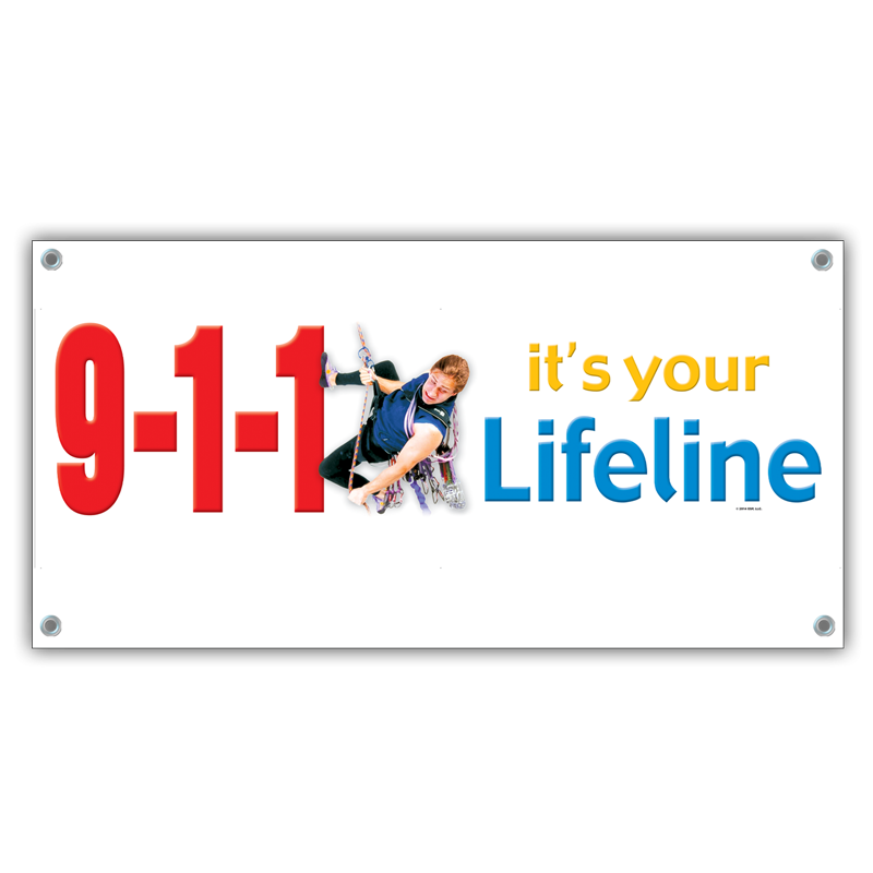 Remind everyone that 9-1-1 is here to help in the event of an emergency with this eye catching vinyl banner. Help promote public safety and crime prevention in your community today! These banners can be placed in high traffic areas, such as streets, parks, or public events, to increase the visibility of who to call in an emergency.