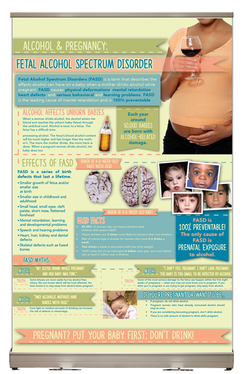 The Alcohol and Pregnancy: Fetal Alcohol Spectrum Disorder Retractable Tabletop Banner gives a complete overview of the causes of fetal alcohol spectrum disorder (FASD).