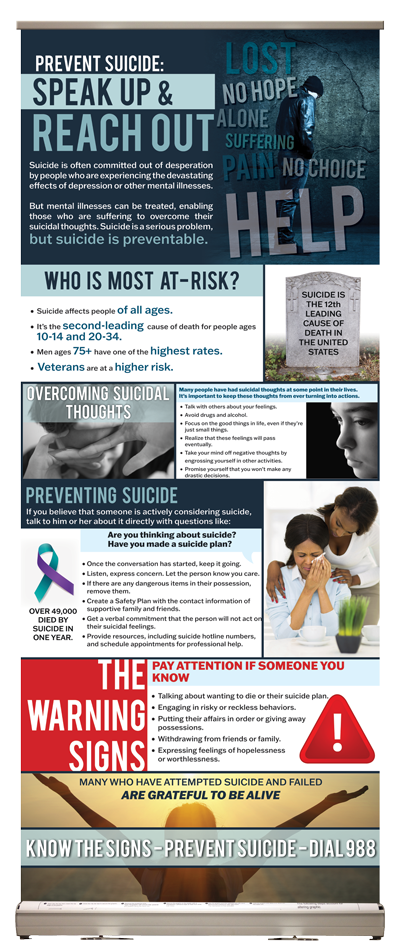 FREE PERSONALIZATION on Presentation Displays. Speak Up, Reach Out, Save Lives!