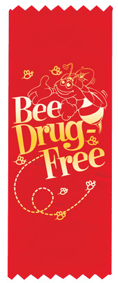 Each “Bee’ Drug-Free!” red with a gold imprinted ribbon features:
