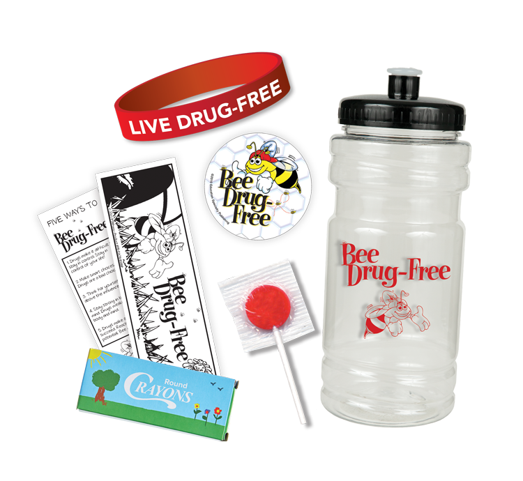 Each “‘Bee’ Drug-Free” BottlePak includes a 20 ounce sports bottle pre-filled with:
