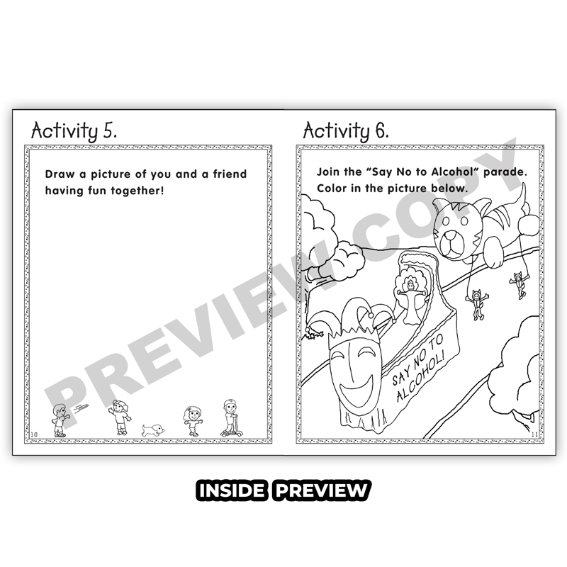 This 12-page “Being Me and Alcohol Free” coloring and activity book teaches kids the many negative effects drinking has on the body and mind. Emphasizes the hazard posed by people who drink and drive.