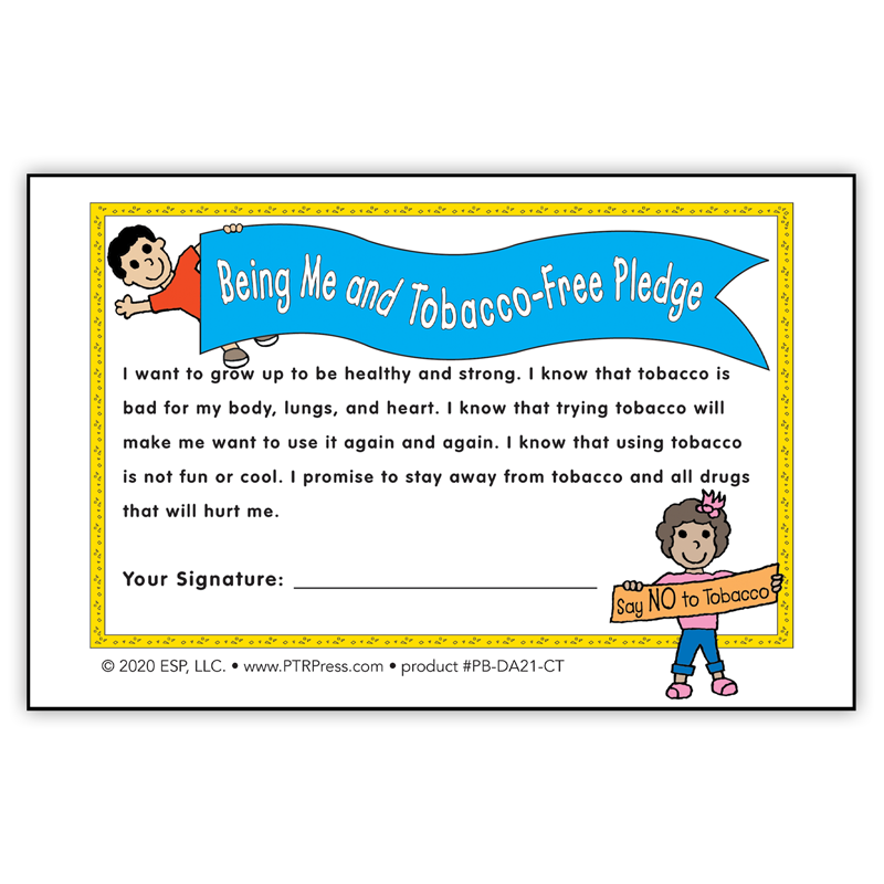 Children can commit to being tobacco free with our “Being Me and Tobacco-Free!” Certificates. Great to hand out after a school presentation. Made with thick, quality paper.