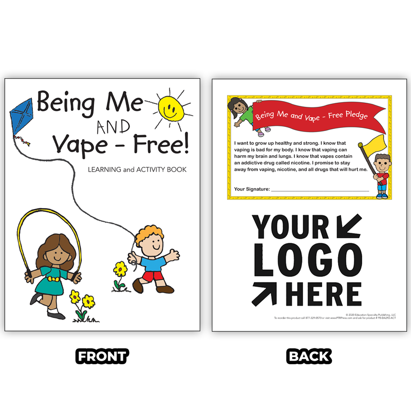 This fun filled “Being Me and Vape Free” learning and activity book teaches children about the dangers of electronic cigarettes, vaping and nicotine. Illustrations and large text make this book the perfect vehicle to educate youngsters about the dangers of vaping. The 12 page activity book stresses that vaping is bad for your lungs and brain. Also teaching children that vaping is not cool.