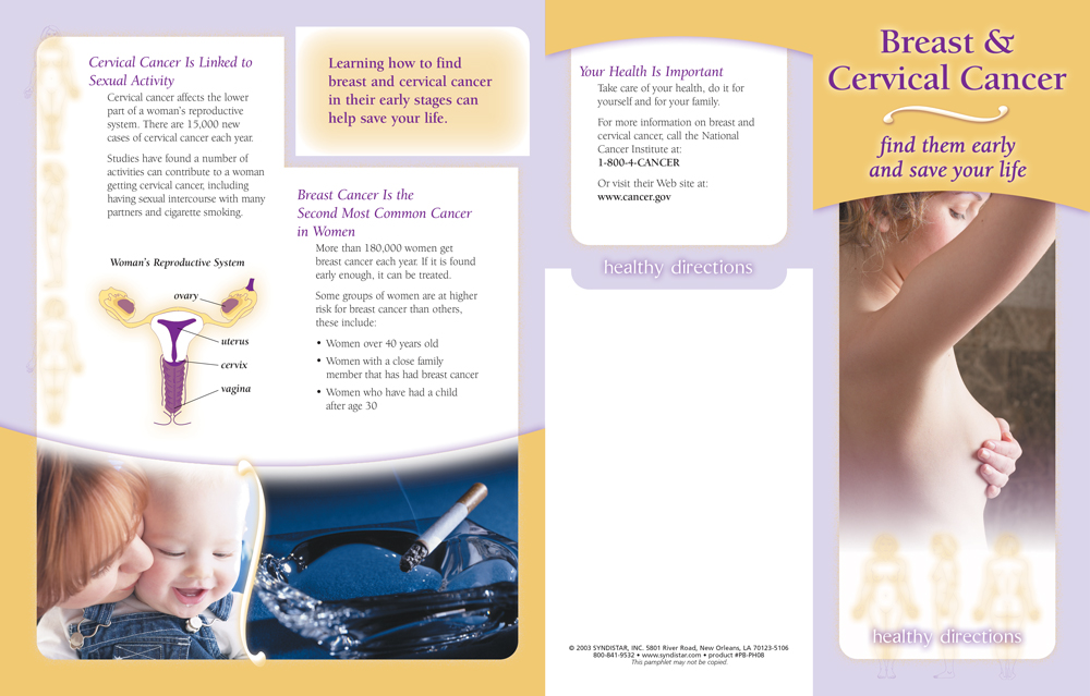 Spread life saving knowledge with our Breast & Cervical Cancer: Find Them Early and Save Your Life Pamphlets. These easy to read pamphlets deliver essential information about early detection, risk factors, and preventative measures, helping to support healthier communities and informed decision-making.