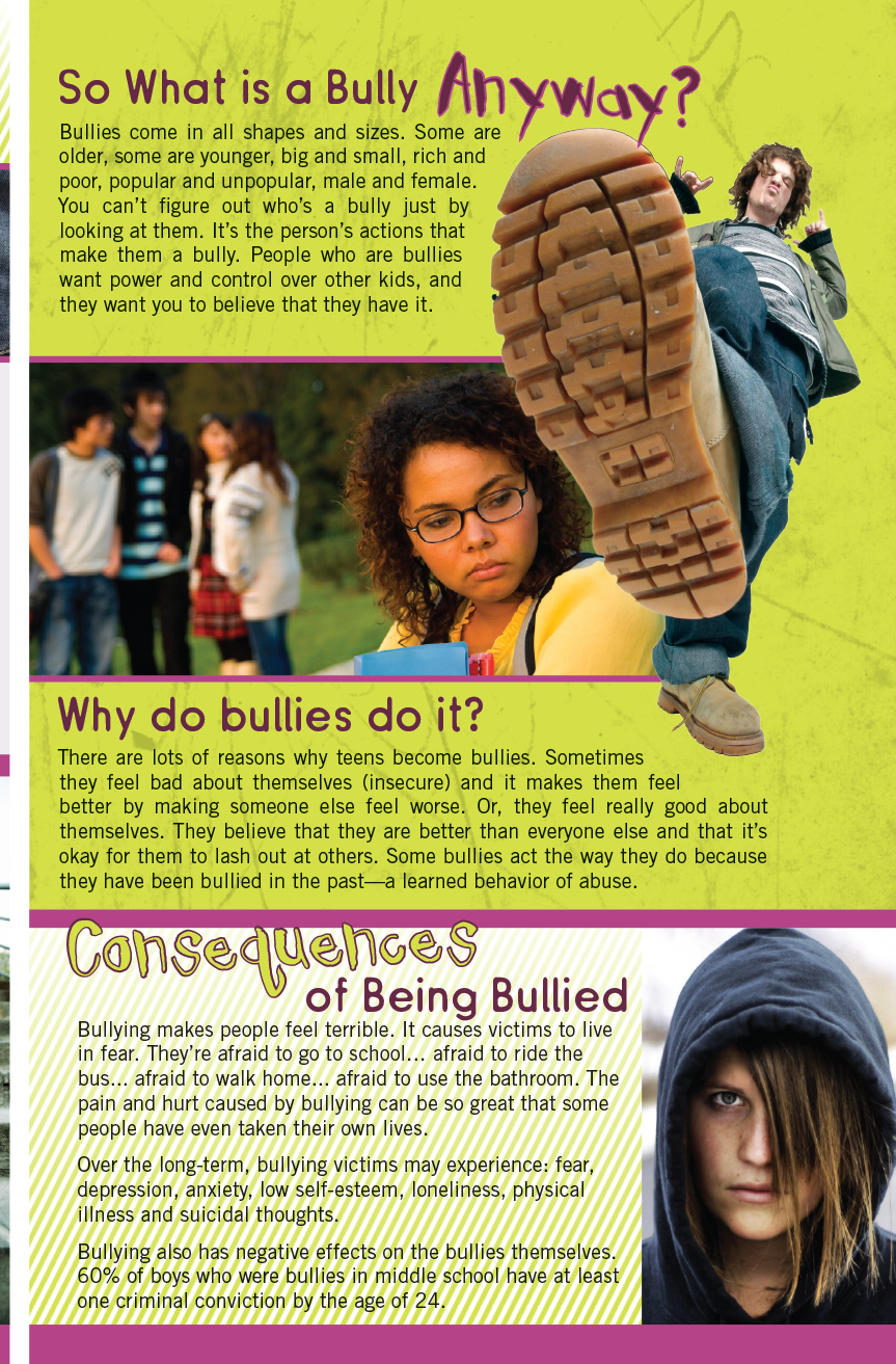 Each Bullying Stinks Miniature Magazine includes the following information: