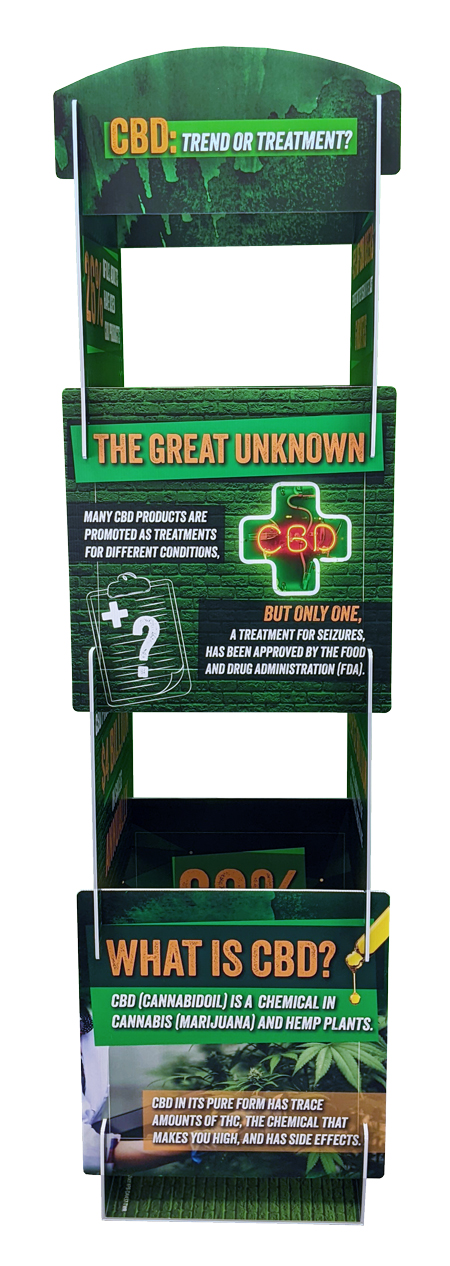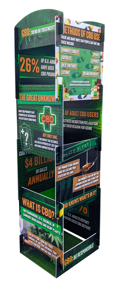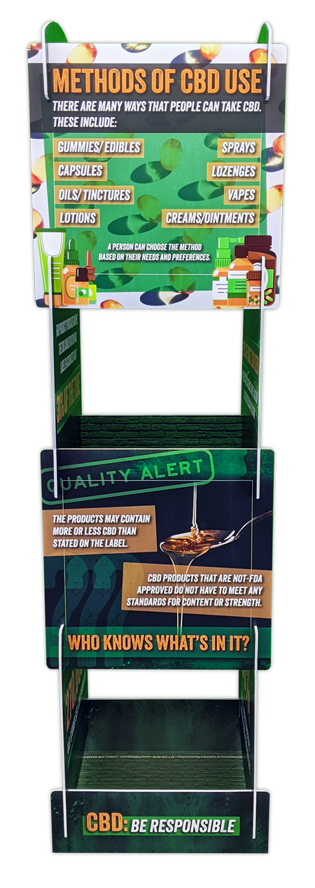 CBD is everywhere—but what’s fact and what’s fiction? This informative info tower display helps clear the confusion surrounding cannabidiol (CBD), breaking down the science, risks, and legal considerations in an easy-to-understand format.