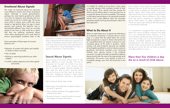 If you like these awareness pamphlets, then check out our Protecting Your Child from Abuse Pamphlets.