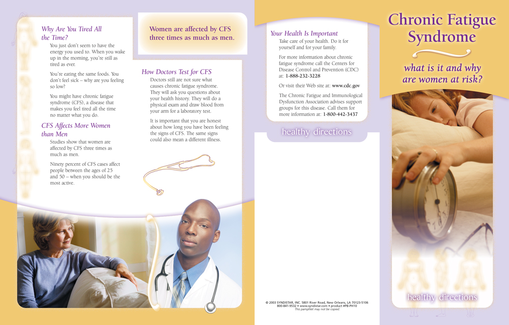 Chronic Fatigue Syndrome affects millions, and women are more likely to suffer from it than men. This pamphlet provides a clear and concise explanation of what CFS is, how it impacts daily life, and why women are at higher risk. It also offers guidance on the symptoms to watch for and steps to take if you think you or someone you know may be affected.