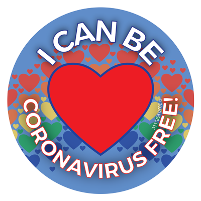 Each sticker features theme artwork and the slogan “I Can Be Coronavirus Free!” to remind individuals to stay safe and healthy during this global pandemic.