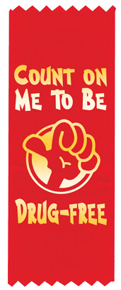 Each “Count on Me to Be Drug-Free!” red with a gold imprinted ribbon features: