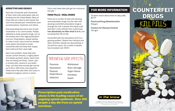 If you like this Counterfeit Drugs Pamphlet, then check out more of our Heroin and Opioid Prevention Materials.