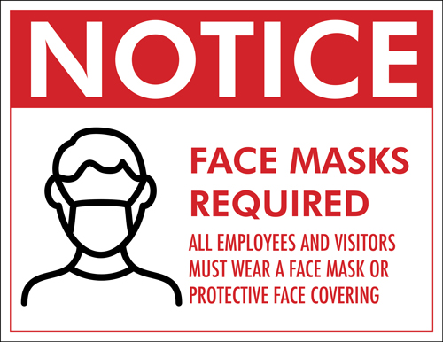 Our new COVID-19: Face Mask Required Plastic Sign allows organizations to remind their community to wear face masks before entering their building. Wearing a face mask in public helps to slow down the spread of coronavirus, germs and diseases. Get your message across and straight to the point with this tear proof sign. Broadcasting a bright and bold red imprinted message, “Notice – Face Masks Required – All employees and visitors must wear a face mask or protective face covering.” These affordable signs are also environmentally friendly and reusable. Long lasting, water proof and weather resistant. Great for both indoor or outdoor use. Remind every one to stay safe and to please wear a mask.