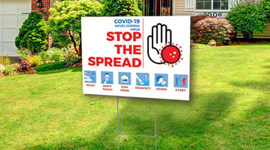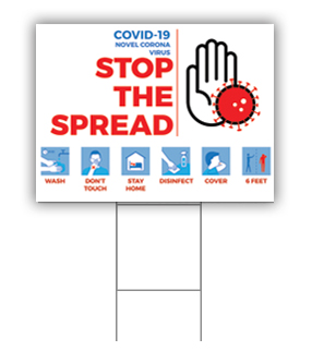 Grab Attention, Not Germs: Get Your ‘Stop the Spread’ COVID-19 Awareness Yard Sign Today. With this COVID-19: Stop the Spread Yard Sign you will remind every generation in your community that you care about them & want to help stop the spread of the coronavirus.