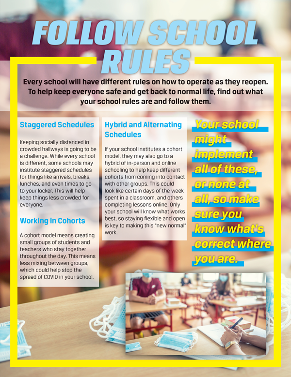 • Different models of school schedules & the importance of following them to protect you and your friends from COVID-19