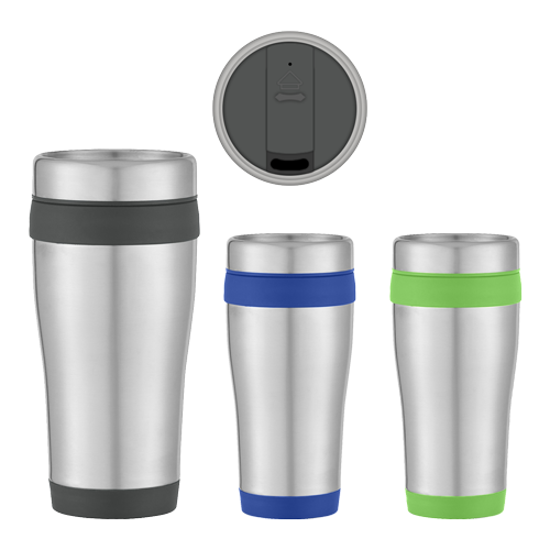 - Features stainless steel outer with plastic inner lining