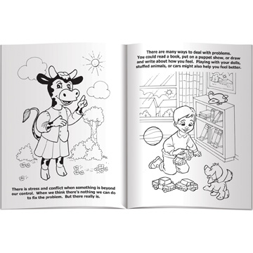 Teach kids “How To Handle Stress and Conflict” with this fun and educational coloring and activity book. Carolyn the cow helps kids understand that stress affects everyone. She teaches us that stress is normal, but we can learn to handle it and not get “stressed out.” Coloring presents a special way that children can learn about the world around them. These coloring books can often help children understand complicated issues such as bullying, healthy habits, and safety.