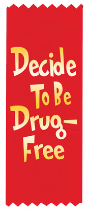 Each “Decide to be Drug-Free!” red with a gold imprinted ribbon features: