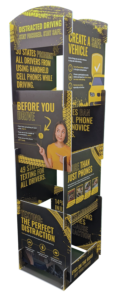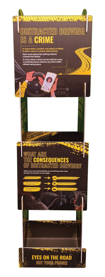 Looking for a powerful tool to educate your community about the dangers of distracted driving? Steer your community in the right direction with our Distracted Driving: Stay Focused, Stay Safe Tabletop Info Tower. This tower is a powerful tool to educate your community with knowledge that can save lives and make roads safer for everyone.