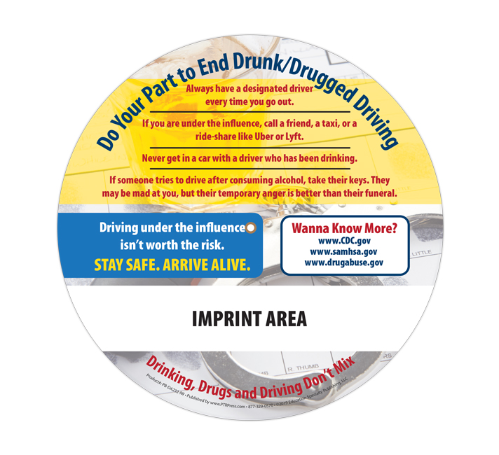 Flip the wheel over and you’ll find more information on what you can do to prevent drunk and drugged driving. It also includes additional links to find more information. What’s more, we offer FREE Personalization! Add your name, logo, or a custom message to leave a lasting impression.