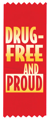 Each “Drug Free and Proud!” red with a gold imprinted ribbon features:
