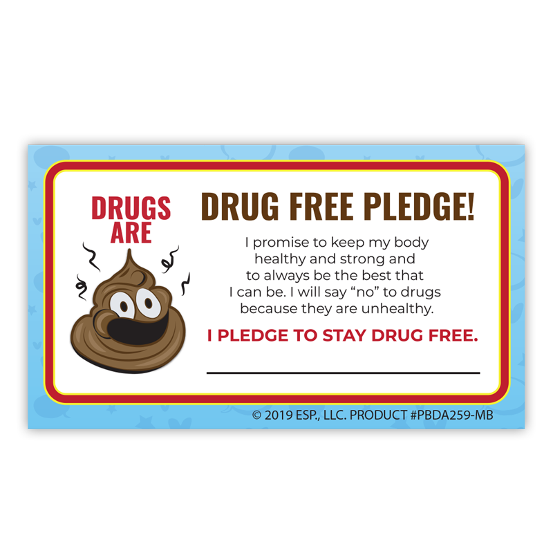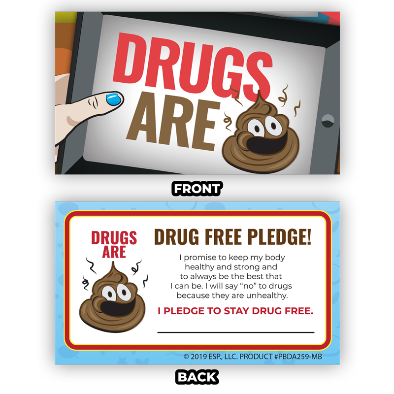 This double-sided “Drugs are ?” Emoji Pledge Card is a great way for children to symbolize their commitment to a drug-free lifestyle. This 3.5″ x 2″ pledge card reads: “I promise to keep my body healthy and strong and to always be the best that I can be. I will say “no” to drugs because they are unhealthy. I pledge to stay drug free.” The front of the card reads “Drugs are ?- Stay Happy, Stay Healthy, Stay Drug-Free” and features the theme artwork. These cards last long after your drug prevention campaign has ended because they are printed on quality, heavy card stock.