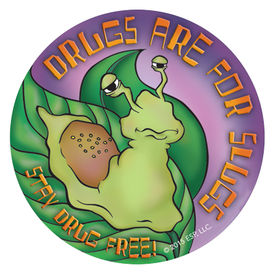 These Drugs are For Slugs stickers allow kids to proudly display their dedication to being drug free in a fun way! They’re a great reminder that drugs are bad and make people feel bad, too. With a 2.5-inch diameter, the stickers are highly visible and work well with a variety of drug prevention events for kids.