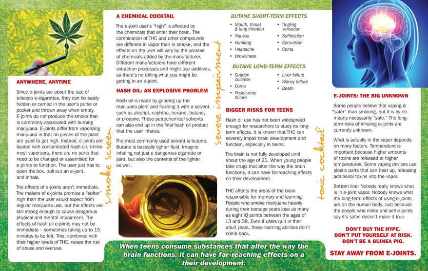 - Identifies the risks of e-joint use for teens