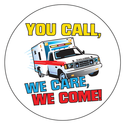 Promote your local paramedics or EMS with these colorful stickers with the message, “You Call, We Care, We Come” Emergency Medical Services (EMS), or paramedics, work hard to keep your community safe because they care and want to make the world a better place. This sticker reminds children of the important role that emergency medical personnel play in the community. Raise awareness about the importance of seeking medical help in case of an emergency today.  And, for the ultimate in convenience, the stickers are individually cut so it eliminates the hassle of rolls. Pulling a fresh sheet of stickers from the treat bag can bring on big smiles from kids of all ages.