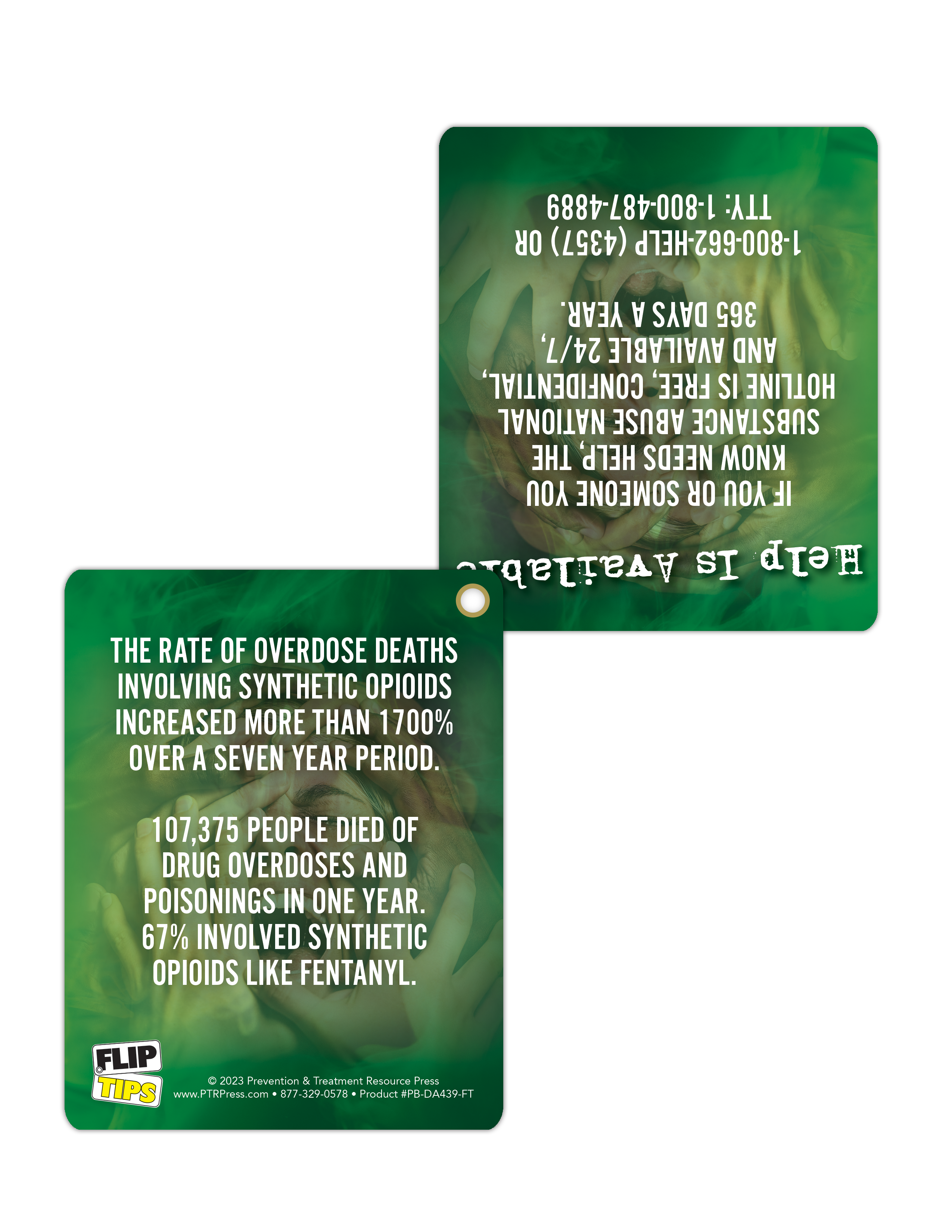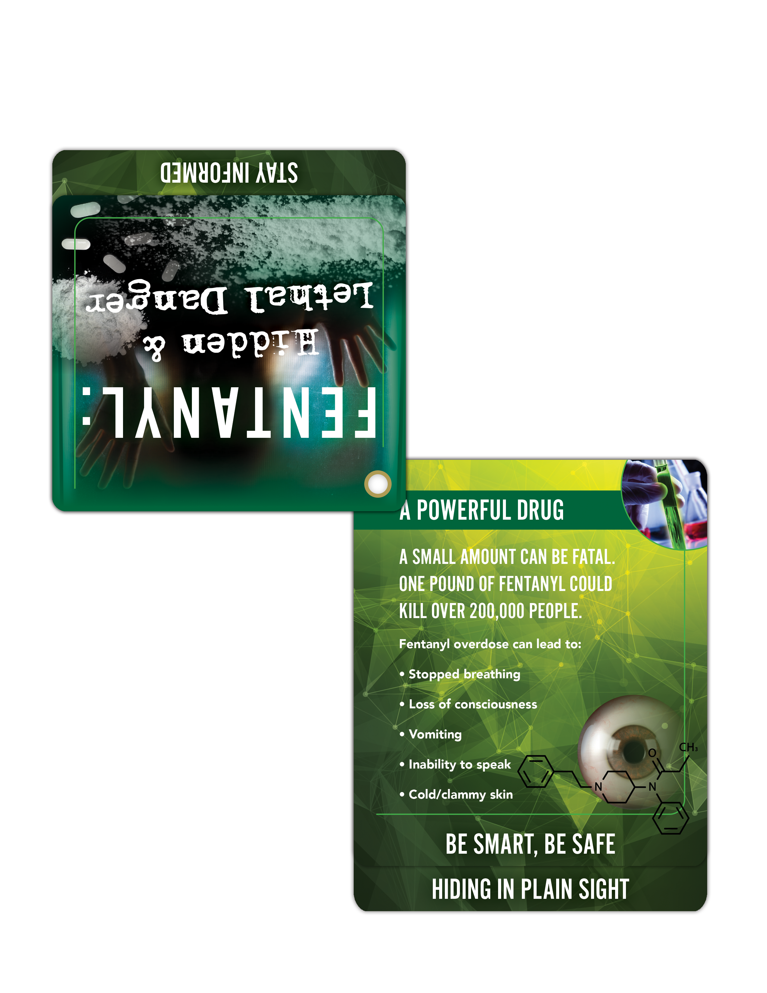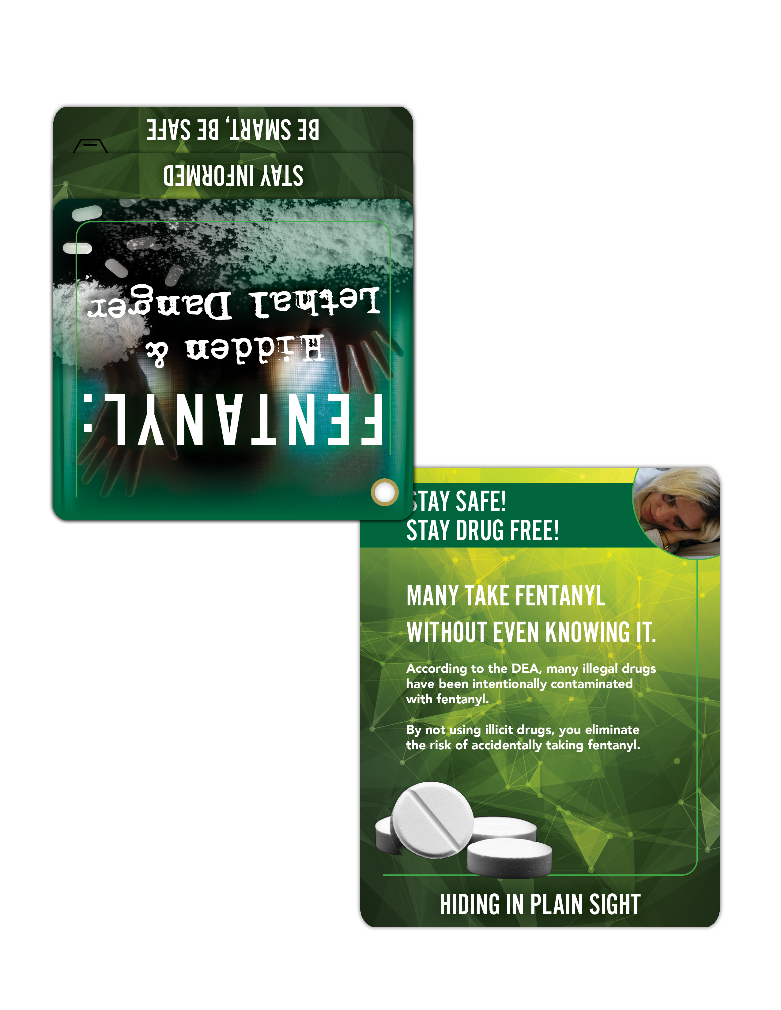 Defeat short attention spans when it comes to drug prevention with our “Fentanyl: Hidden & Lethal Danger” Flip Tips. These interactive rotating cards are packed with eye catching graphic and informative key points, making them a great takeaway at events.