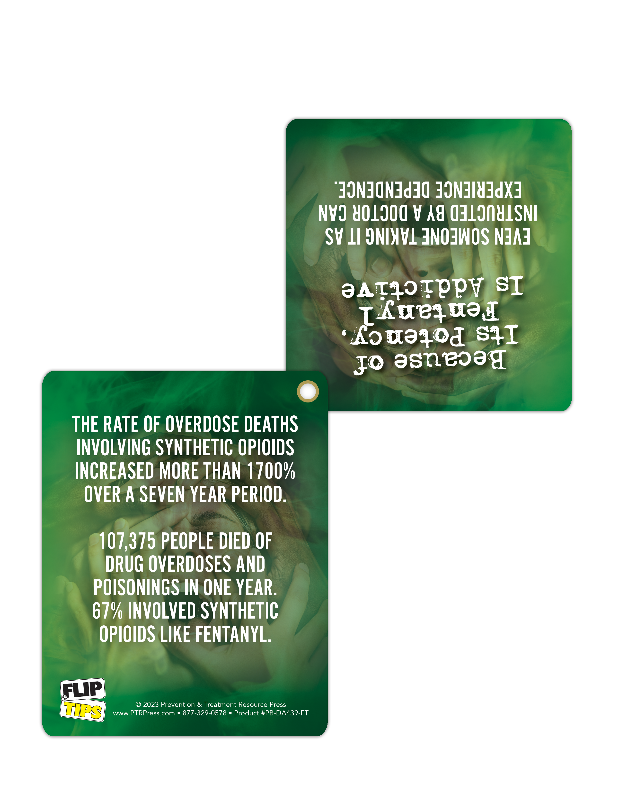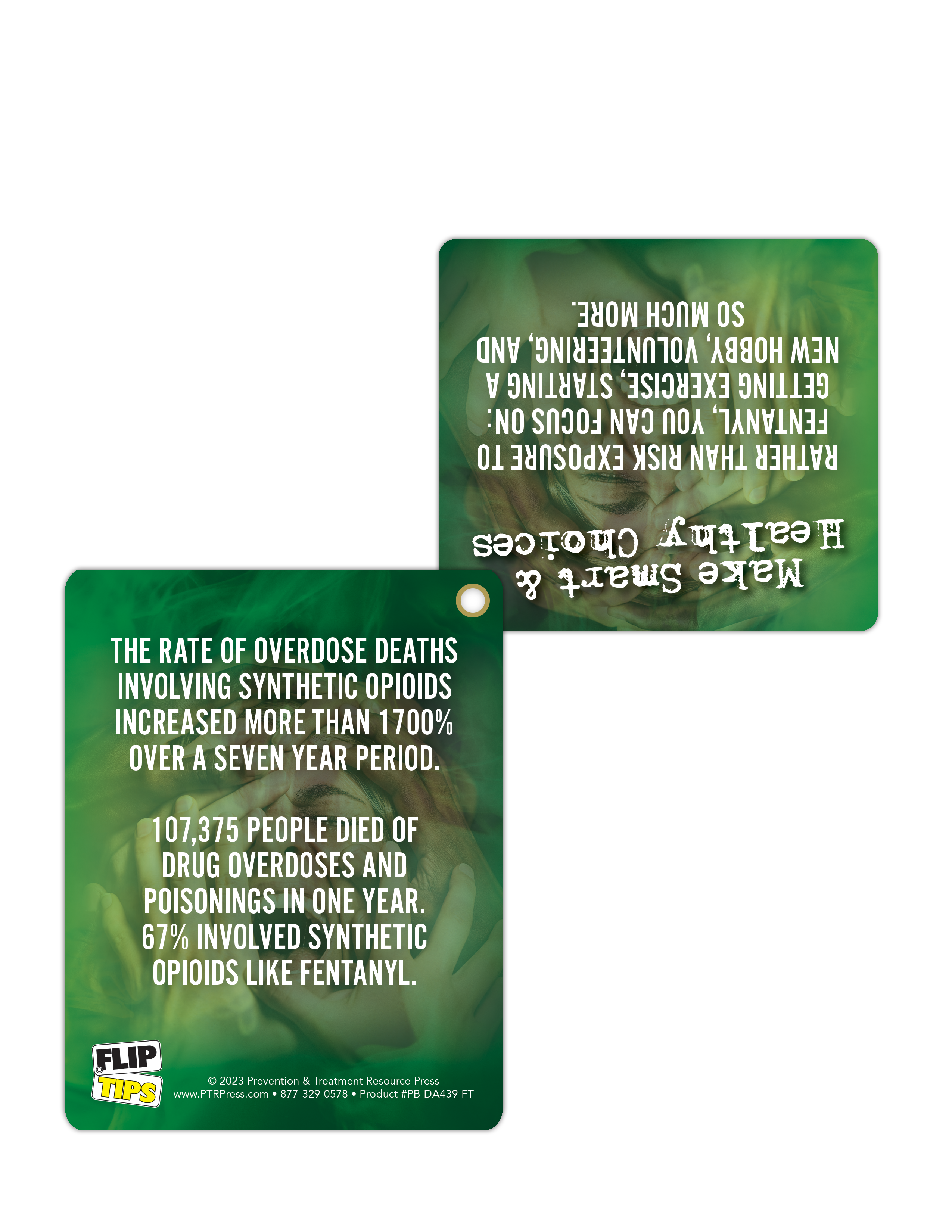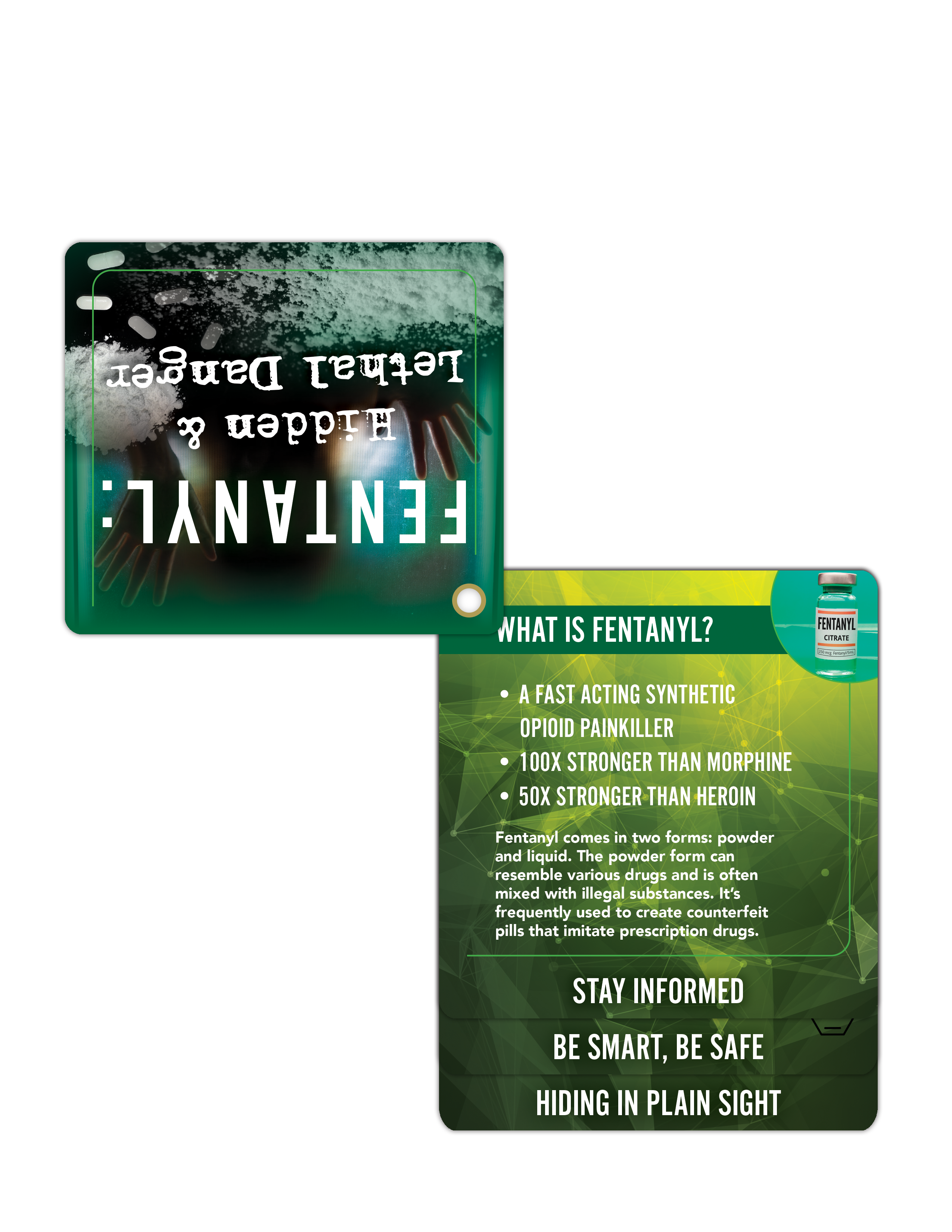 Defeat short attention spans when it comes to drug prevention with our “Fentanyl: Hidden & Lethal Danger” Flip Tips. These interactive rotating cards are packed with eye catching graphic and informative key points, making them a great takeaway at events.