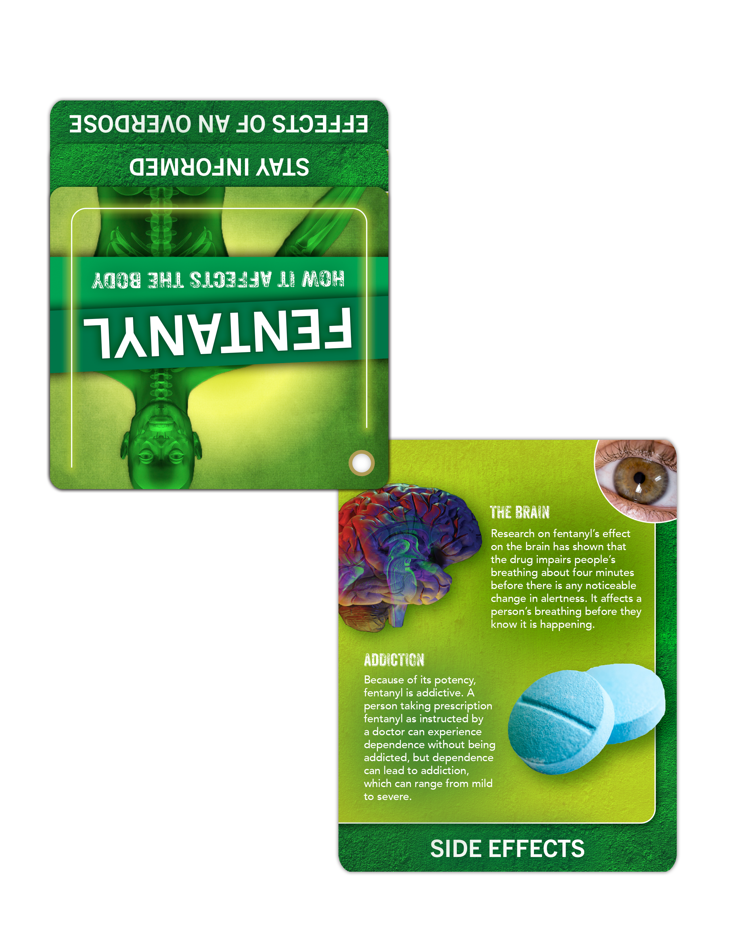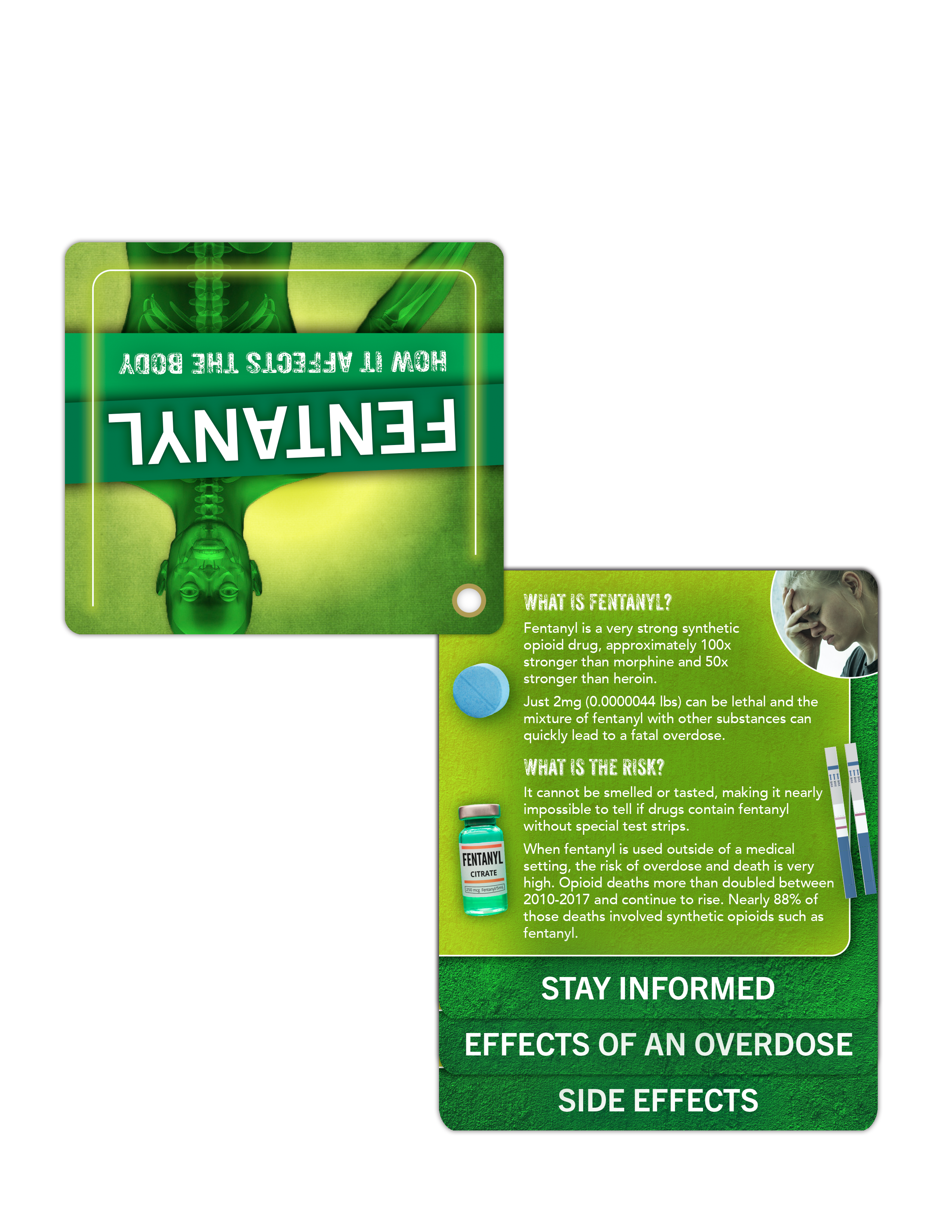 Hand them out at at health workshops, substance abuse awareness events, or even during community outreach programs. Every flip becomes a tool for preparing individuals and communities to make informed choices, fostering a culture of awareness and prevention against the dangers of Fentanyl.
