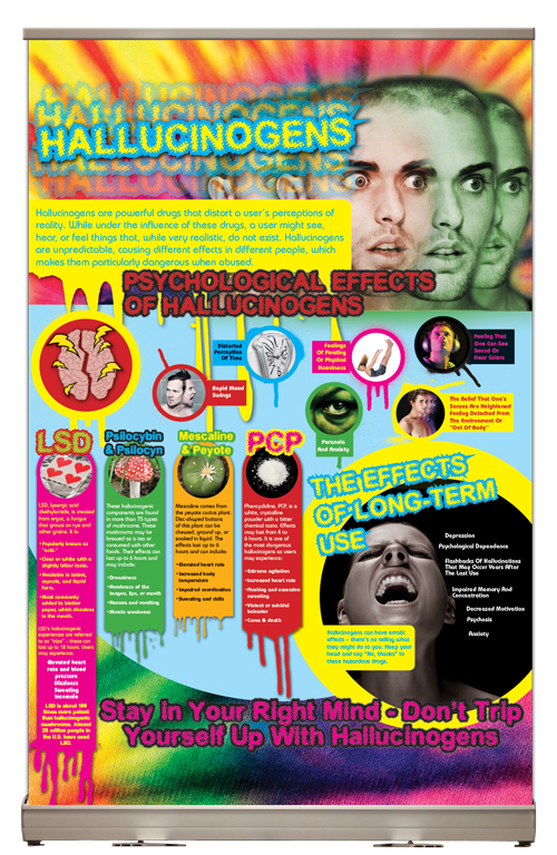Bring clarity to your audience with the Hallucinogens Tabletop Display, keeping their feet on the ground and their eyes wide open to the realities of hallucinogen use. This eye-catching display shines a light on the real effects of hallucinogens—without the smoke and mirrors.