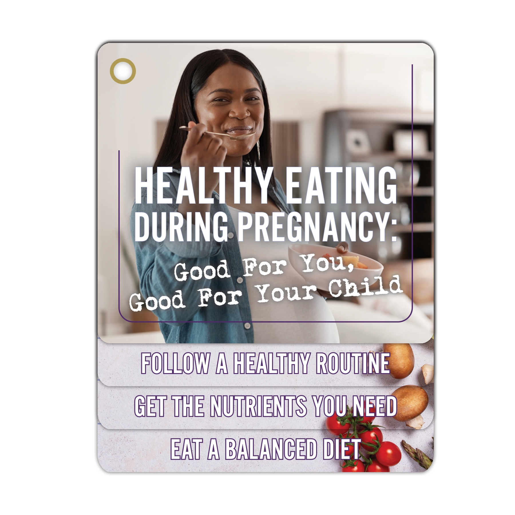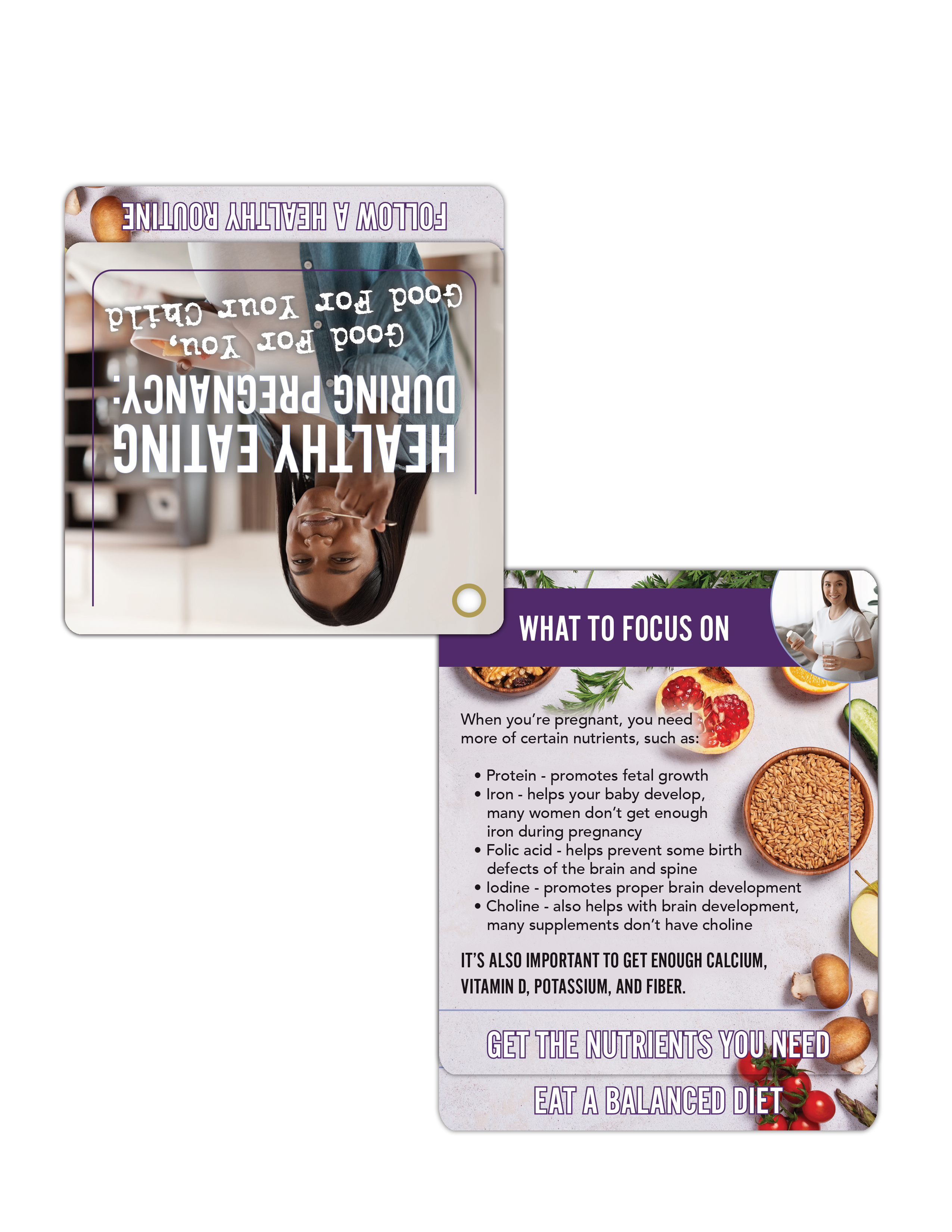 Nourish the prenatal journey for moms-to-be with our Healthy Eating During Pregnancy Flip Tips. The recipe for turning prenatal nutrition education into a delightful experience! Flip through a curated collection of rotating fact cards, each serving up bite-sized information and vibrant visuals toward a healthier, happier pregnancy.