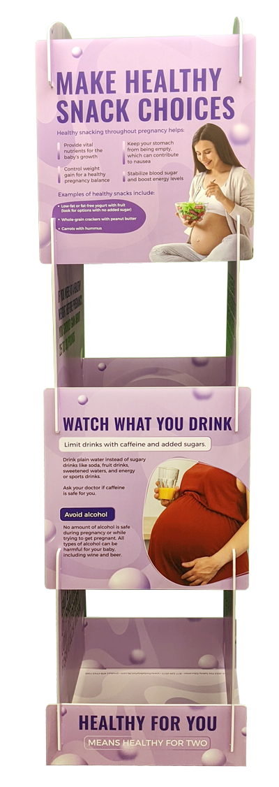 Bump up your nutrition game with our Healthy Eating During Pregnancy Info Tower. This tower is a powerful tool to spice up your prenatal care events! The versatile 4-sided 360-degree viewing angle design ensures that the information is visible from all angles, spreading the seeds of knowledge on healthy eating. With 8 interlocking panels, it’s a towering testament to the importance of prenatal nutrition. From healthy snack choices to watching what you eat or drink, the tower covers it all.