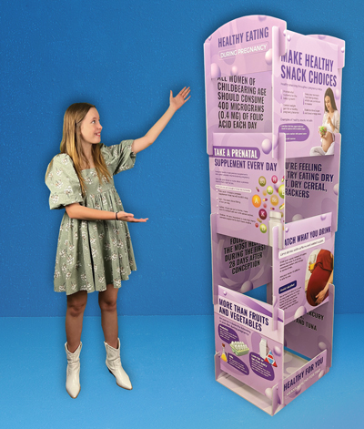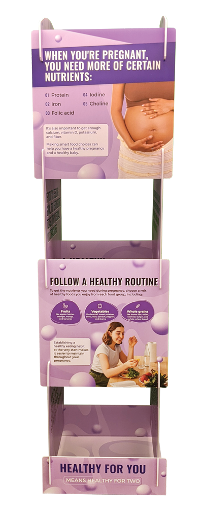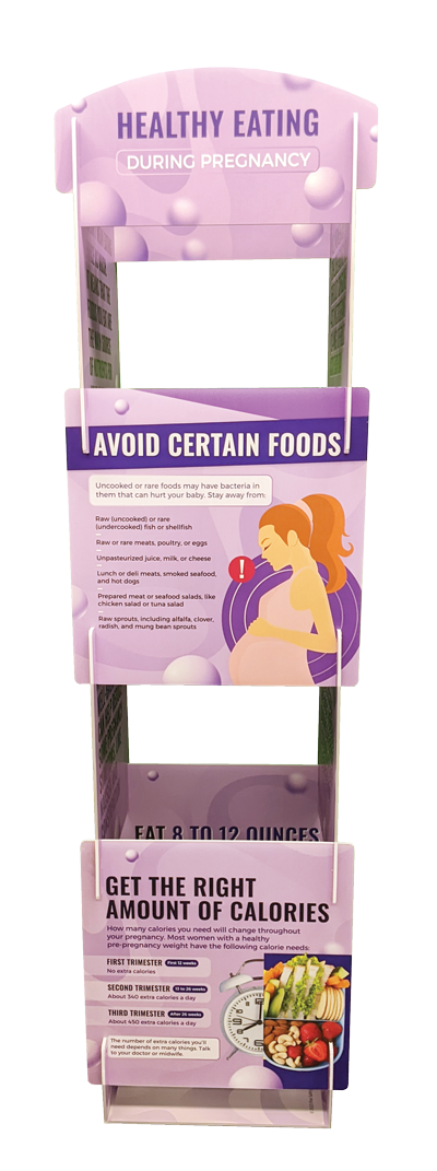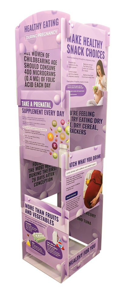 This Info Tower™ is specifically designed to make prenatal nutrition education a breeze, ensuring that your community stays informed and energized. What’s more, add your logo or organization information, because your nutritional expertise deserves the spotlight! So, don’t miss out – grab your tower now, and take prenatal care to new heights!