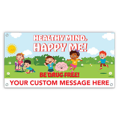 This “Healthy Mind, Happy Me, Be Drug-Free” Banner empowers kids to make smart choices and say YES to a bright, drug free future. This eye catching banner is made of durable, high quality vinyl that is UV-resistant and waterproof. Which makes these prevention tools perfect for repeated use. Additionally, banners are extremely useful decorations for high traffic areas. Whether it’s used in tandem with other products in this line or used all by itself, it’s sure to get some attention. By displaying them in schools or community centers, you can help promote healthy, drug free choices and inspire others to live their best lives.