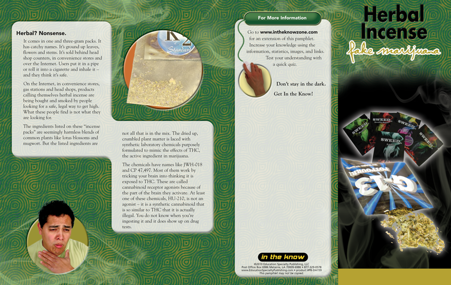 This Herbal Incense, Fake Marijuana Pamphlet is also available in Spanish.