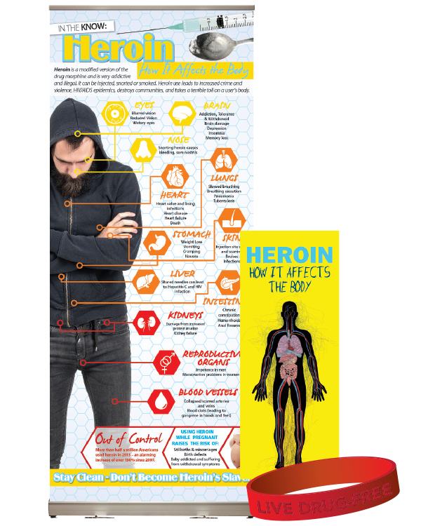 Get the facts about the devastating effects of heroin on the human body with our display, pamphlets, and wristbands package. Arming your community with knowledge is the first step in preventing heroin abuse. Gain valuable insights, resources, and tools to combat heroin risks. This all in one package equips individuals with the knowledge needed to make a difference.
