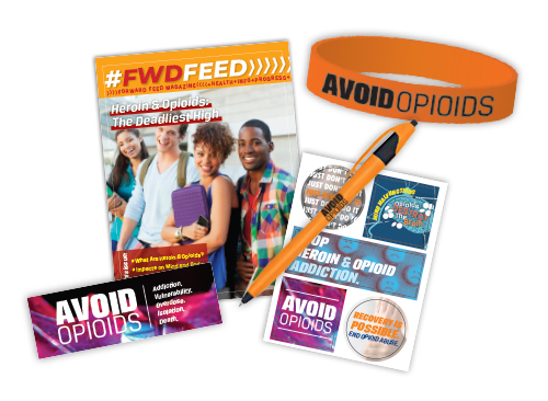 In each of our “Heroin and Opioids: The Deadliest High” FWDPaks you will find five of our educational materials and promotional products combined all together in one convenient package. Specifically designed for high school and college students, each package contains all the necessary materials so young people are able to understand and address the risks and dangers of heroin and opioid use. Prevention can save lives, especially those of the younger populations who are at higher risk. Provide young adults with the awareness information tools to help themselves or others in need. These assembled packs are up to date and great to hand out at your Awareness Events, Health Fairs, Schools and more! What’s more, you can add your custom message and logo to get the recognition your organization deserves!