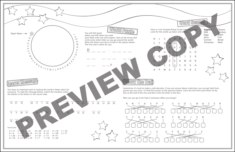 - Engaging word searches, mazes, and crosswords that make learning about drug prevention a delightful challenge.