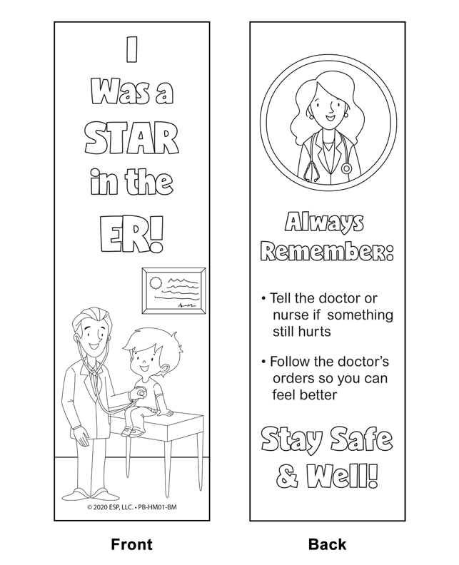 Imagine a world where going to the Emergency Room (E.R.) is less scary for kids and more like an adventure! Well, our emergency room bookmarks make it possible. These double-sided bookmarks inspire kids to unleash their inner artist and add their personal touch while discovering what to expect during an E.R. visit. It’s like taking a journey to the E.R., but with crayons and creativity as your companions.