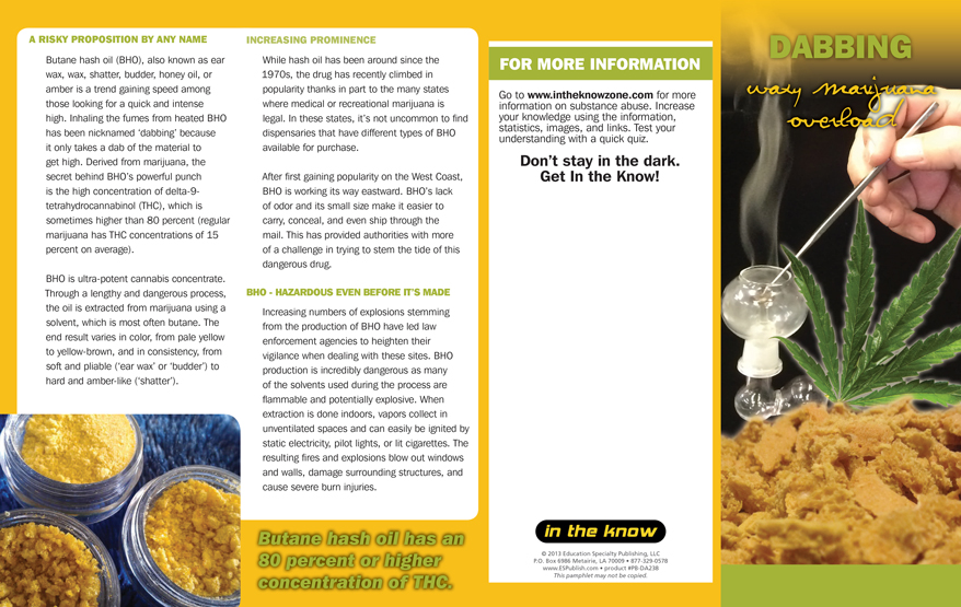 If you like this Dabbing BHO Prevention Pamphlet, then check out more of our Marijuana Prevention Materials.