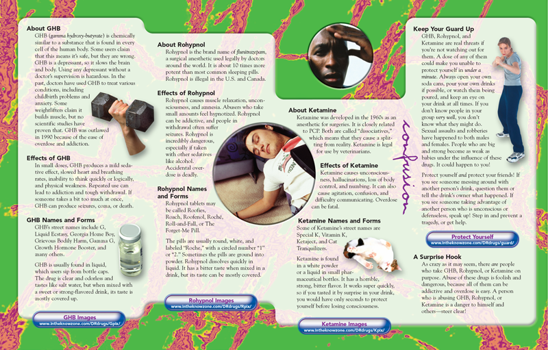 If you like this GHB, Rohypnol, and Ketamine Pamphlet, then check out more of our MDMA, Molly and Ecstasy materials here.