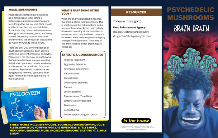 Use these pamphlets in schools, community centers, or local events to spark conversations, raise awareness, and inspire individuals to make choices that contribute to a substance free lifestyle. Distributing these pamphlets is an active step towards building an educated and drug free community.  Make a difference in educating others about the potential risks associated with psychedelic mushrooms and promote responsible decision making today.