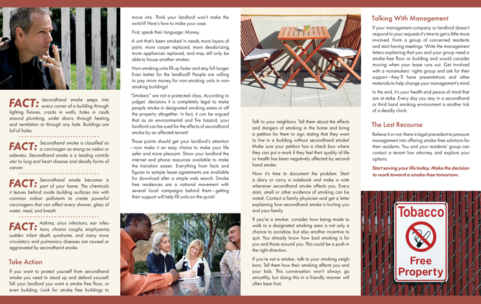 Whether you’re you’re organizing an awareness event, speaking to property managers, landlords, or seeking to educate your community, these pamphlets are an invaluable resource. From highlighting the dangers of secondhand smoke to creating smoke-free environments, these pamphlets encourage individuals to take control of their health and advocate for smoke-free spaces.