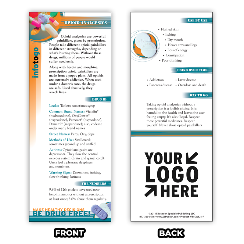 Turn education into action with our Opioid Analgesics Rack Cards. Specifically designed to spark conversations and increase awareness, these cards shed light on the risks associated with opioid painkillers. Whether you’re hosting a community event, a healthcare seminar, or a school awareness program, these compact resources are your go-to tool for addressing this critical topic.