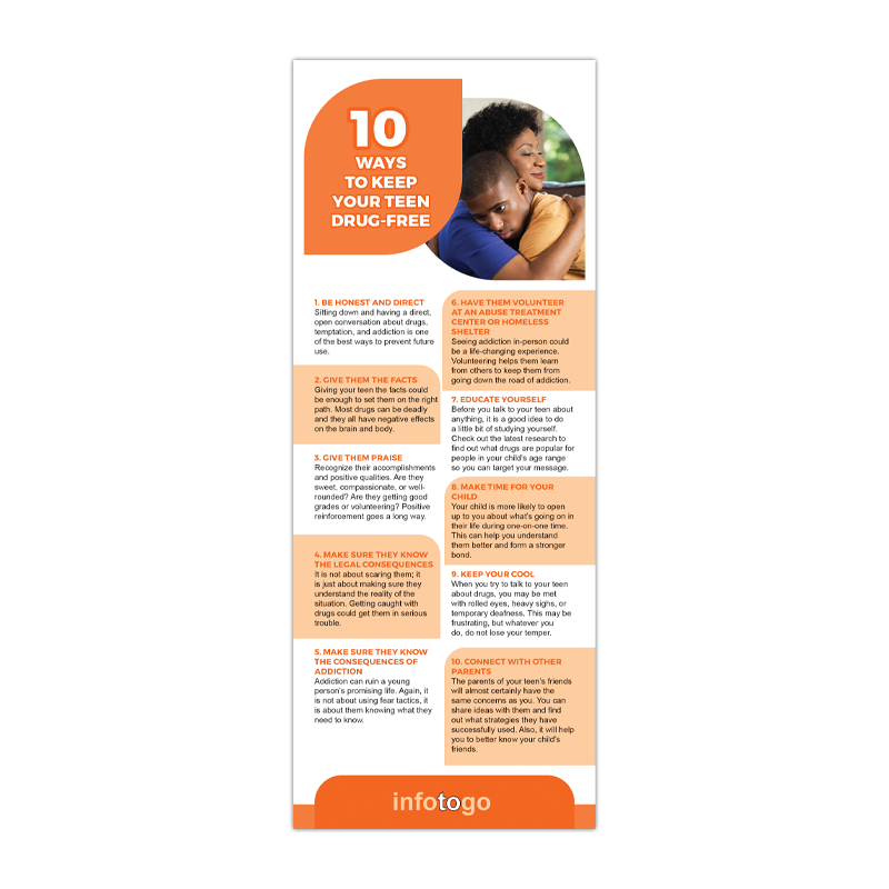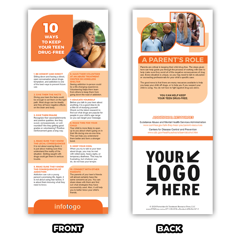 Help parents be a positive force in their teen’s life with the ‘10 Ways to Keep Your Teen Drug-Free’ Rack Cards—because prevention starts with the right conversations and the right resources.