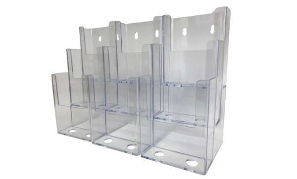 Display all your pamphlets and brochures with this sturdy nine compartment, 3 tier clear acrylic holder. Brochure displays are essential for sharing information and building brand awareness. Available for countertop placement or wall mounting! This three tiered acrylic holder is a great way to organize and display your important information. Freestanding and portable so you can display your brochures on desks, counters, or almost any flat surface. A perfect way to catch your audiences eye with a selection of literature and multiple topics to choose from. Great for use in health departments, fairs, schools, medical offices as well as any place to display your selection of pamphlets, brochures or rack cards. What’s more, these holders feature a simple, sleek design for a professional look at an affordable price.