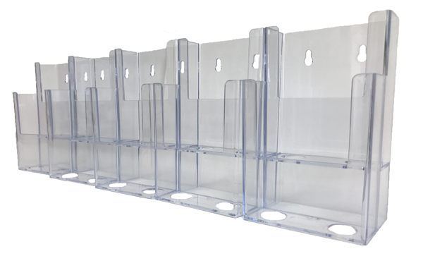 Display all your pamphlets and brochures with this sturdy ten compartment clear acrylic holder. Brochure displays are essential for sharing information and building brand awareness. Available for countertop placement or wall mounting! This two tiered acrylic holder is a great way to organize and display your important information. Freestanding and portable so you can display your brochures on desks, counters, or almost any flat surface. A perfect way to catch your audiences eye with a selection of literature and multiple topics to choose from. Great for use in health departments, fairs, schools, medical offices as well as any place to display your selection of pamphlets, brochures or rack cards. What’s more, these holders feature a simple, sleek design for a professional look at an affordable price.
